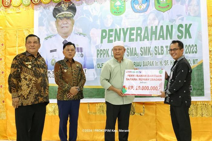 Plt Bupati Meranti Asmar bersama Pj Gubernur Riau SF Hariyanto, saat penyerahan SK PPPK untuk 35 Guru SMA, SMK