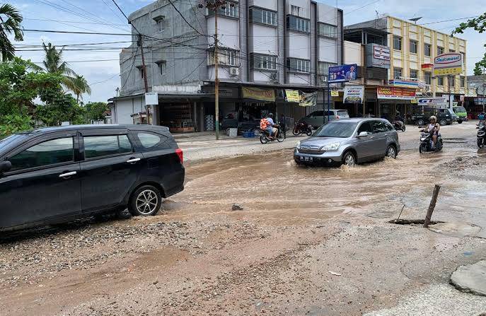 Kondisi kerusakan Jalan Dharma Bakti Sigunggung, Payung Sekaki, Pekanbaru
