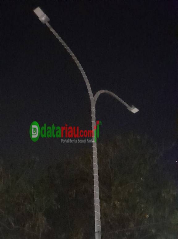 Kondisi lampu PJU di jalan raya Minas-Perawang Kecamatan Tualang padam saat malam hari.