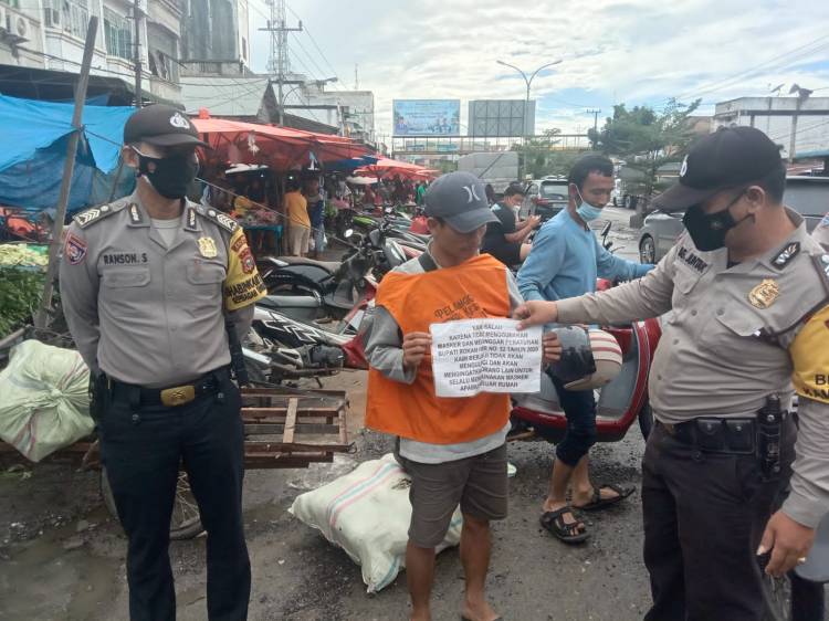 Plh Kapolsek Bagan Sinembah Ops Yustisi Prokes di Kota Bagan Batu