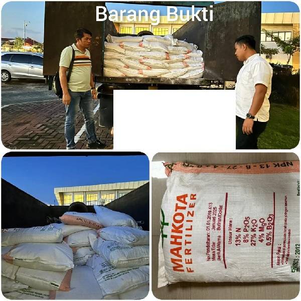 "Dari dalam mobil tersebut petugas berhasil mengamankan barang bukti 135 karung pupuk merek Mahkota Fertilizer yang diduga palsu," kata Kabid.