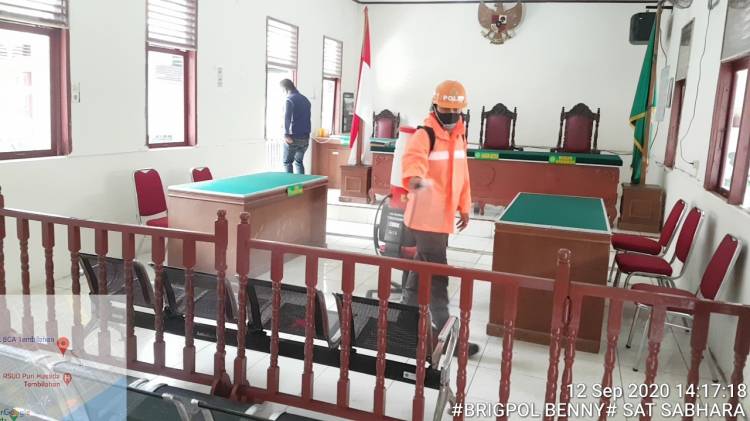 Polres Inhil melaksanakan giat pencegahan dan memutus mata rantai Covid-19 di Tembilahan dengan cara penyemprotan desinfektan, pada Sabtu (12/9/20) .