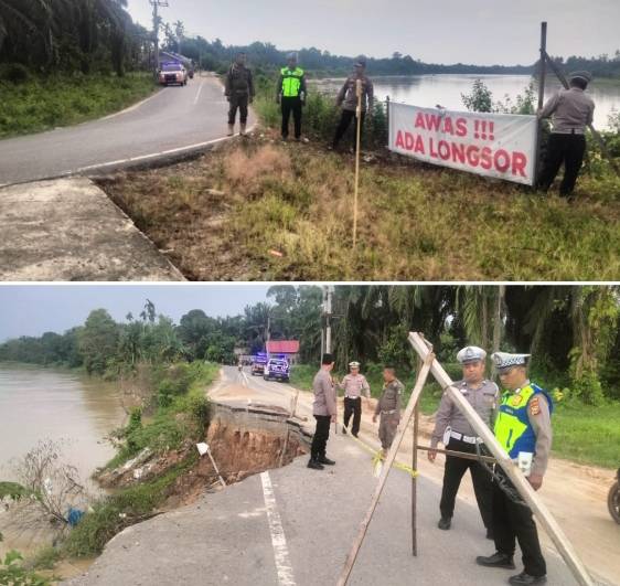 Untuk mengantisipasi hal-hal yang tidak diinginkan, tambah Misran, Polres Inhu telah memasang rambu peringatan dari kedua arah lalu lintas tentang terjadinya jalan longsor akibat abrasi. Melakukan pengamanan jalur jalan oleh pihak kepolisian agar tidak terjadi kecelakaan lalu lintas.