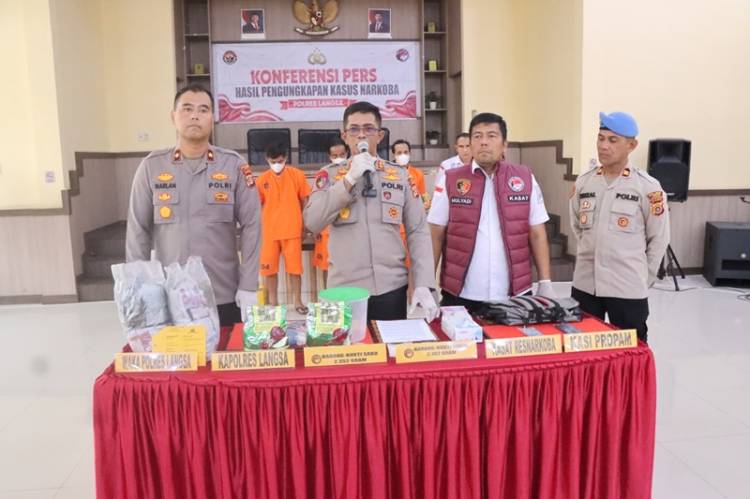 Hal tersebut disampaikan Kapolres Langsa AKBP Mughi Prasetyo Habrianto didampingi Wakapolres Kompol Hendra Marlan, Kasat Narkoba AKP Mulyadi dan Kasi Propam Iptu Erizal, saat konferensi pers di Mapolres Langsa, Rabu (18/6/2025).