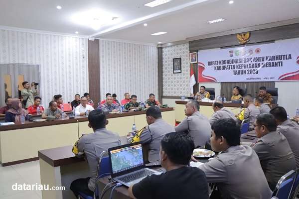 Kapolres Kepulauan Meranti AKBP Andi Yul dalam sambutannya menyampaikan bahwa rakor dan anev karhutla kali ini difokuskan pada koordinasi langkah-langkah pencegahan kebakaran hutan dan lahan dengan pihak yang terkait.