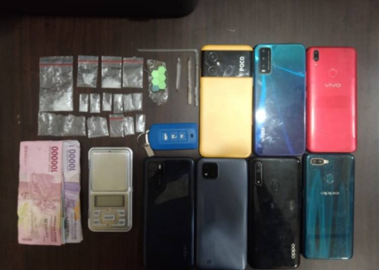 Selanjutnya, Tim yang di dampingi RT setempat langsung melakukan penggeladahan, dan di dapur Rumah pondok itu ditemukan 1 plastik yang didalamnya di duga berisikan Narkotika Jenis Sabu, 1 buah Bong 1 buah Kaca pirex,1 buah Sekop/Sendok Plastik pipet dan 6 butir yang diduga Narkotika jenis Inex, dan dari dalam Dompet saudara Yogi tim menemukan uang kertas senilai Rp.,410.000,- yang diduga uang hasil penjualan narkoba jenis sabu,