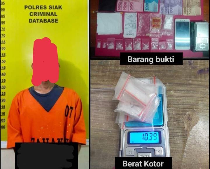 Pelaku beserta barang bukti narkotika jenis sabu-sabu diamankan Satres Narkoba Polres Siak.
