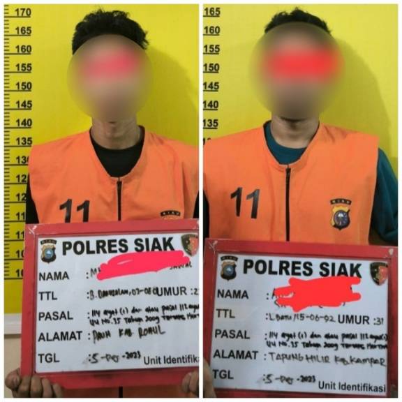 Polres Siak Menangkap 2 Pria Diduga Pelaku Tindak Pidana Peredaran Gelap Narkoba di Minas