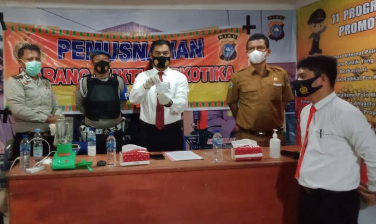 Pemusnahan barang bukti sabu tersebut diperoleh dari tersangka H alias Poyon yang kemudian dilakukan pengembangan dari tersangka D alias Yanto berdasarkan laporan masyarakat bahwa sering terjadi tindak penyalahgunaan Narkotika jenis sabu di Jalan Perdagangan tepatnya di Perkebunan Kelapa Sawit Kepenghuluan Bahtera Makmur Kecamatan Bagan Sinembah Kabupaten Rokan Hilir.