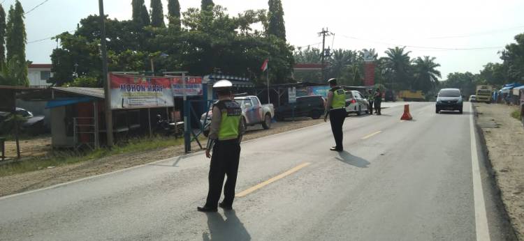 Polsek Bagan Sinembah Sekat Jalan Perbatasan, Puluhan Kendaraan Putar Balik