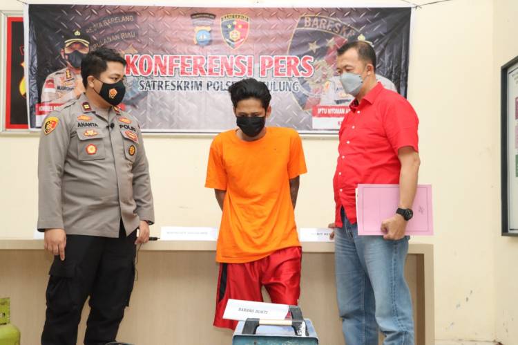 BATAM, datariau.com - Kapolsek Sagulung Iptu Nyoman Ananta Mahendra STrk menggelar Press Release Ungkap DPO pencurian pemberatan di PT Hong Yuan Kecamatan Sagulung, didampingi Kasi Humas AKP Tigor Sidabariba SH, Kanit Reskrim Polsek Sagulung Ipda Hasmir SH bertempat di Mapolsek Sagulung, Kamis (28/4/2022).