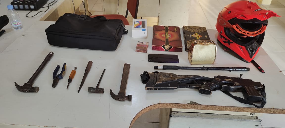Bersama pelaku turut diamankan barang bukti satu pucuk senjata api rakitan laras panjang dengan 1 butir peluru kaliber 3,56 mm, 2 buah palu, 2 buah obeng, sebuah tang, 1 unit sepeda motor Kawasaki KLX warna putih, sebuah jam tangan merk skmei, sebuah hp merk infinix dan sejumlah barang bukti lainnya terkait kasus ini.