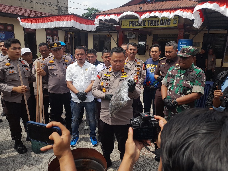 Polsek Tualang Press Release Pemusnahan BB 7 Kg Daun Ganja Kering