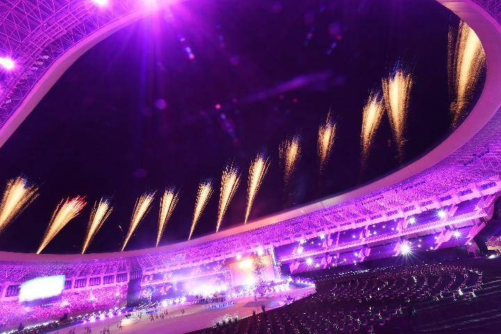 Mereka yang mengikuti defile adalah perwakilan atlet dan ofisial masih bertanding dalam tiga hari sebelum penutupan.