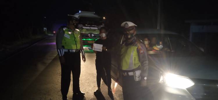 PPKM Level 2, Kanit Lantas Polsek Bagan Sinembah Lakukan Penyekatan di Perbatasan Riau-Sumut