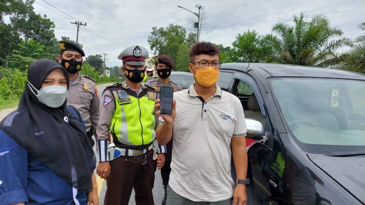 PPKM Level 3, Kanit Lantas Polsek Bagan Sinembah Pimpin Penyekatan Jalan Antar Provinsi