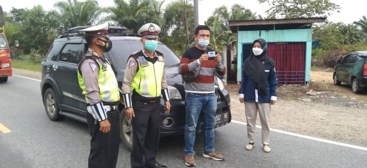 PPKM Level 3, Kanit Lantas Polsek Bagan Sinembah Pimpin Penyekatan Jalan di Perbatasan