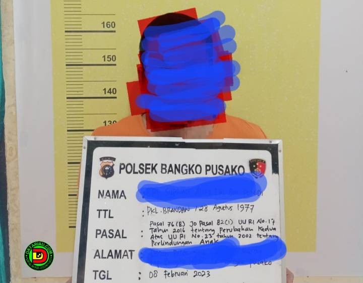 Berdasarkan laporan tersebut, diperoleh informasi bahwa terlapor berada di km 21 Kepenghuluan Balam Sempurna Kecamatan Bangko Pusako, kemudian unit Reskrim mengamankan terlapor dan membawa ke Polsek Bangko Pusako, dan berdasarkan keterangan terlapor saat diinterogasi, ia mengaku bahwa benar telah melakukan perbuatan cabul terhadap korban. Selanjutnya tersangka dan barang bukti yang berhubungan dengan perkara tersebut diamankan untuk proses lebih lanjut.