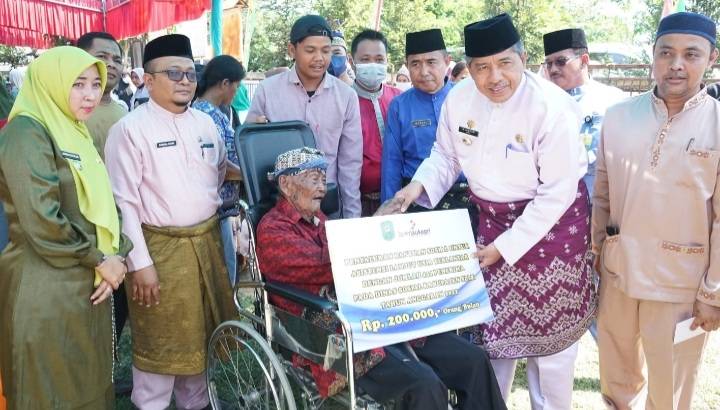 Bupati Siak, Drs H Alfedri MSi berikan santunan langsung kepada Mbah Martarejo.