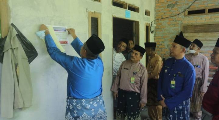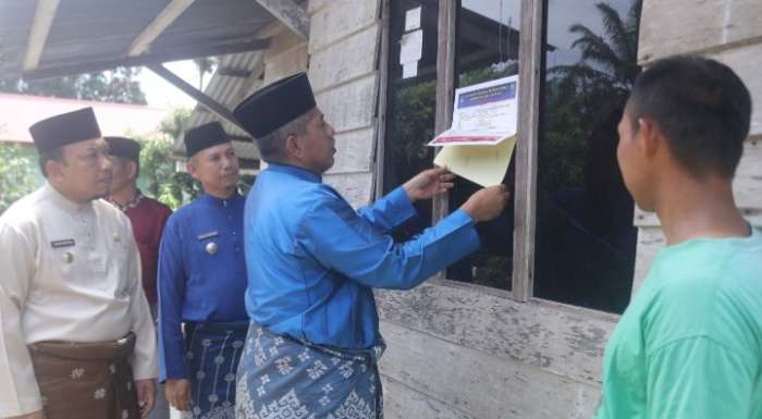 Bupati Siak, Drs H Alfedri MSi tempel stiker rumah PKH di Sabak Auh.