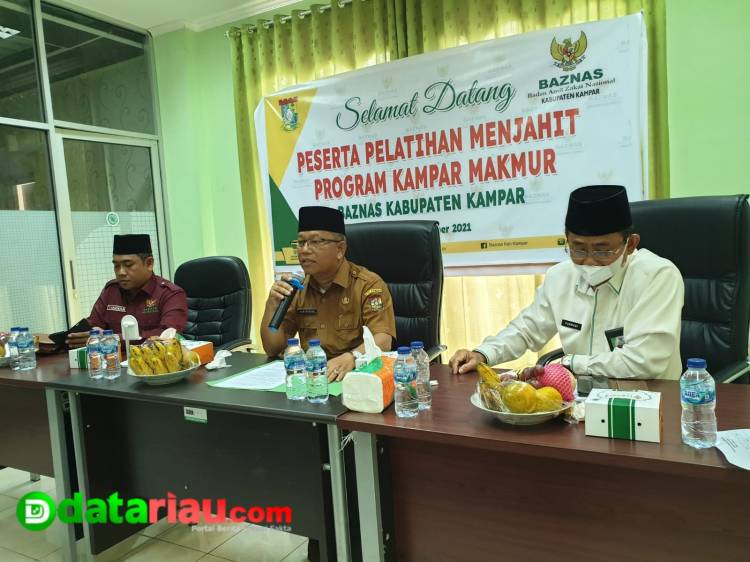 Ketua Baznas Kampar, Purwadi S P M Si dalam sambutannya menyampaikan Baznas Kampar memiliki 5 program diantaranya Kampar Makmur, Kampar Cerdas, Kampar Takwa, Kampar Peduli dan Kampar sehat. Melalui program Kampar Makmur, Baznas mengadakan kegiatan pelatihan menjahit untuk ibu-ibu yang tergolong fakir.