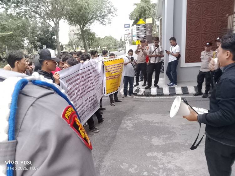 PEKANBARU, datariau.com - Belasan orang yang menamakan diri Aliansi Mahasiswa dan Pemuda Peduli Anti Korupsi Riau, mendatangi kantor Kejaksaan Tinggi Riau pada Rabu pagi, 18 Februari 2026. Mereka menuntut aparat penegak hukum mengaudit Rektor Universitas Islam Negeri Sultan Syarif Kasim Riau atau UIN Suska Riau.