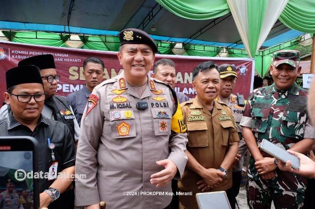 MERANTI, datariau.com - Pelaksana tugas (Plt) Bupati Kepulauan Meranti AKBP (Purn) H Asmar bersama unsur Forkopimda Kepulauan Meranti mendampingi Kapolda Riau Irjen Pol H Mohammad Iqbal, saat meninjau pelaksanaan Pemungutan Suara Ulang (PSU) Pemilihan DPRD kabupaten/kota Dapil Meranti , tepatnya di TPS 02 Desa Tanjung Peranap Kecamatan Tebingtinggi Barat, Sabtu (29/6/2024).