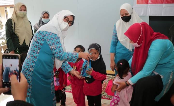 Ketua Forikan Siak Hj Rasidah Alfedri bersama PT. BSP tekan angka stunting.