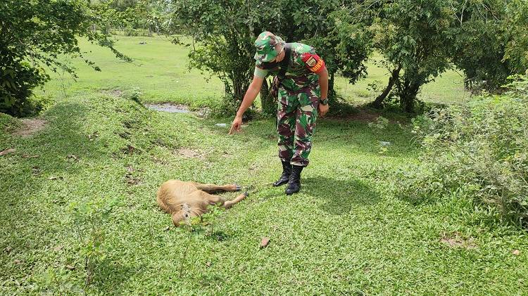 memantau kerbau mati yang berada di Desa Bangun Purba Timur Jaya, Rohul.