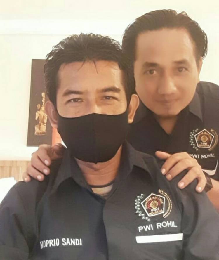 Ketua PWI Rohil, Nopriosandi ST saat bersama Wakil Ketua Bidang Pembelaan Wartawan, Zulfan Effendi.