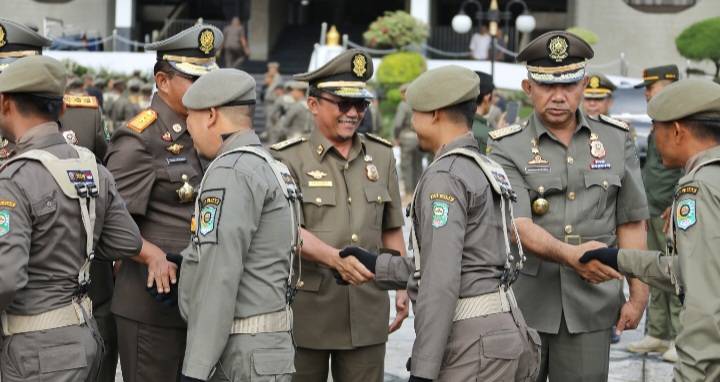 Sekertaris Daerah Kabupaten Siak Drs H Arfan Usman MPd pada peringatan HUT ke-73 Satpol PP dan ke-61 Satlinmas di halaman Kantor Gubernur Riau.
