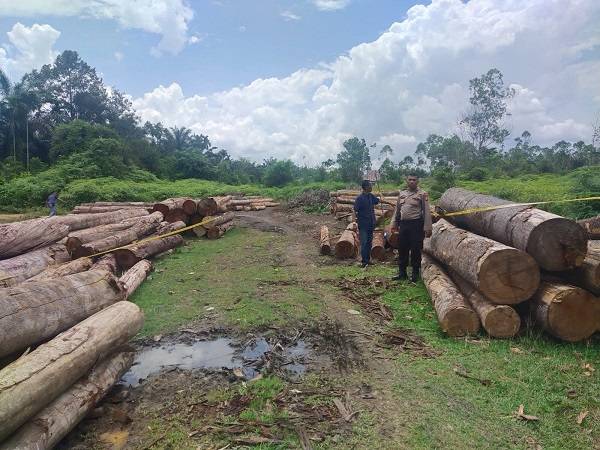 Ratusan Tual Kayu Ilegal Loging Ditemukan Polisi di Desa Kuntu Darussalam Kampar Kiri