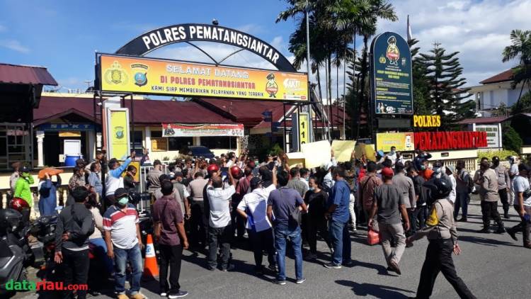 Usai berorasi dan menyampaikan sejumlah tuntutan, massa aksi kemudian bergerak ke depan Mapolres Pematangsiantar dengan pengawalan petugas kepolisian.