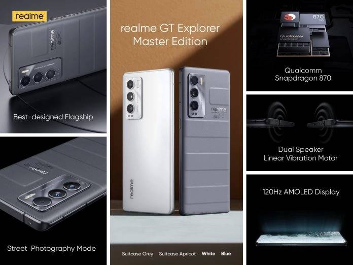 Seri Realme GT Master Edition ini hadir dengan dua varian yang pertama GT Explorer Master Edition dan GT Master Edition. Realme GT Explorer Master Edition ditenagai prosesor Snapdragon 870, layar AMOLED 120Hz, teknologi liquid cooling stainless-steel, pengisian daya 65W Super Dart, sistem triple camera yang mencakup kamera utama 50MP Sony IMX766, lensa sudut lebar 16MP, dan lensa potret B&W.