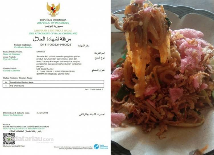 Resmi, Pondok Mie Sagu Sarkel Pekanbaru Kantongi Sertifikat Halal Indonesia