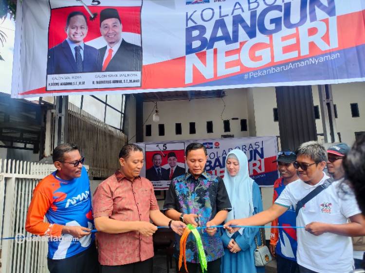 Agung Nugroho saat meresmikan Posko Dunsanak AMAN di Jalan UKA tepatnya di Perumahan Garuda Permai, Kelurahan Air Putih, Kecamatan Tuah Madani, Sabtu (5/10/2024)