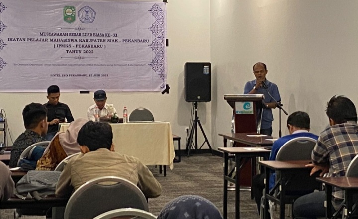 PEKANBARU, datariau.com - Ikatan Pelajar Mahasiswa Kabupaten Siak (IPMKS) kembali melaksanakan Musyawarah Besar Luar Biasa (Mubeslub) sekaligus pembentukkan kepengurusan IPMKS periode 2022-2024, Rabu (15/6/2022) di Evo Hotel Pekanbaru, Riau.