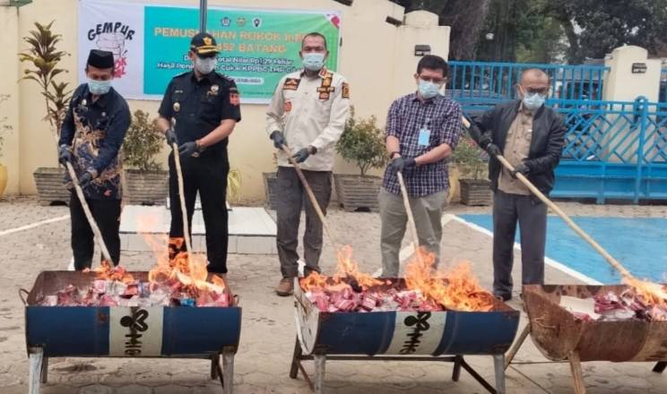 Proses pemusnahan barang bukti rokok tanpa pita cukai.