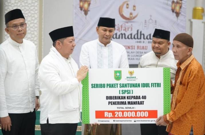 Pemerintahan Provinsi Riau menyalurkan sejumlah bantuan saat melakukan safari ramadan di Masjid Jami Al-Falah.
