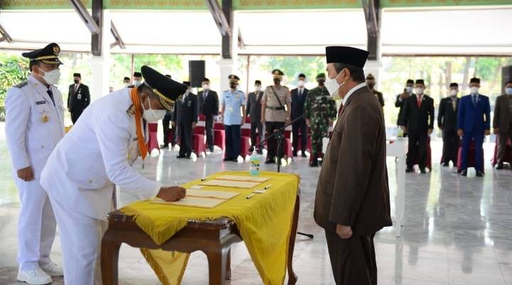 PEKANBARU, datariau.com - Gubernur Riau Drs. H. Syamsuar, M.Si resmi melantik pasangan Drs. H. Alfedri, M.Si dan H. Husni Merza, BBA, MM sebagai Bupati dan Wakil Bupati Siak hasil Pilkada serentak 2020 lalu.