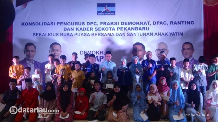 PEKANBARU, datariau.com - Dewan Pimpinan Cabang Partai Demokrat Kota Pekanbaru menyantuni puluhan anak yatim yang ada di Kota Pekanbaru, Ahad (16/4/2023).