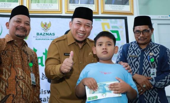Baznas Siak memberikan beasiswa kepada santri yatim dhuafa sebesar 700ribu kepada 50 santri di 12 Ponpes se-Kabupaten Siak, serta bantuan UMKM Gerobak bakso kepada 10 mustahik dari Kecamatan Tualang.