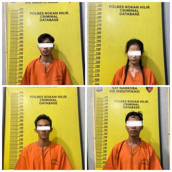 Sama sama beralamat di KM.37, Gang Sidorukun, Dusun Sei. Kayangan, Kepenghuluan Balai Jaya, Kecamatan Balai Jaya, Kabupaten Rohil. Keempat tersangka yang ditangkap itu, masing masing Inisial YH alias Yudi (32), RD alias Rama (20) AD alias Andi (26) dan Seorang ibu rumah tangga inisial RM alias Rahma (27). Sementara 1 orang laki-laki lainnya berhasil meloloskan diri.