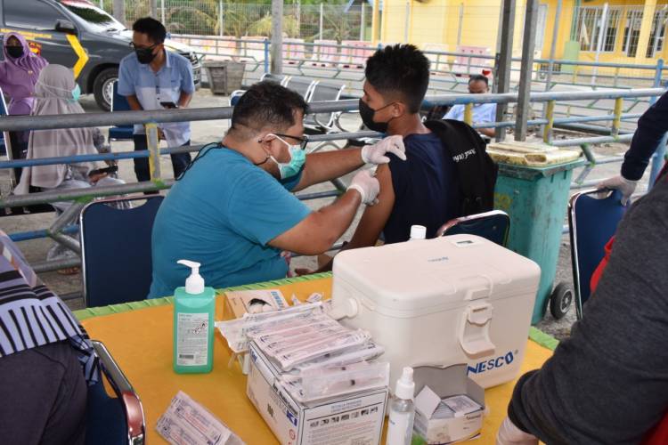 BENGKALIS, datariau.com, Sebagai upaya mendukung program Pemerintah, Tim Satuan Tugas (Satgas) Covid-19 Kecamatan Bengkalis menggelar vaksinasi di pelabuhan roro Bengkalis, Jum'at, 4 Juni 2021.