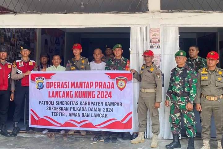 Satpol PP Kampar gencar melakukan patroli sinergitas bersama TNI-Polri guna untuk menyukseskan Pilkada Damai di Kabupaten Kampar pada 2024.
