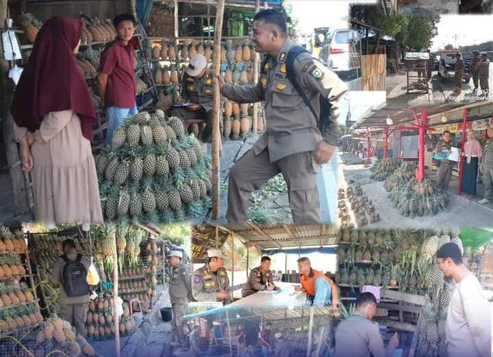 Satpol PP Kampar Tertibkan Pedagang Nenas yang Berjualan di Atas Trotoar Jalan Rimbo Panjang