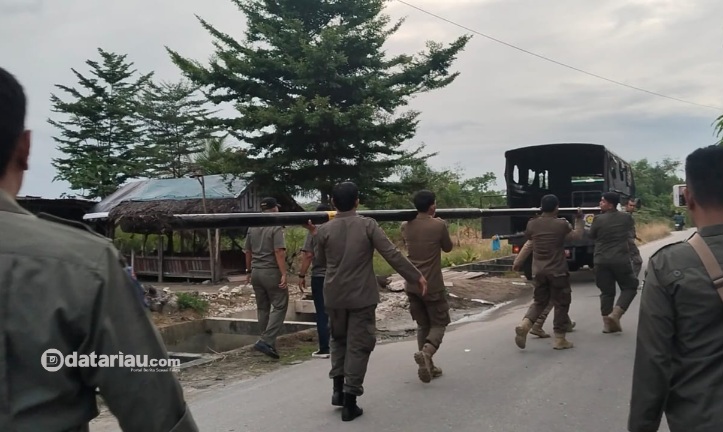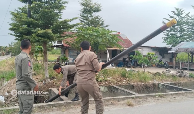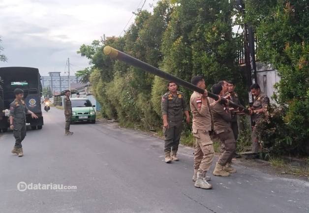 Satpol PP Pekanbaru Cabut Belasan Tiang Fiber Optik Ilegal di Labuhbaru Timur