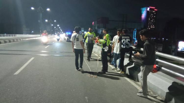 Lokasi kecelakaan lalu lintas di atas Flyover Mal SKA Jalan Soekarno-Hatta Kota Pekabaru. Dua muda mudi yang tengah duduk-duduk di atas flyover tewas tertabrak mobil, Kamis malam (1/12/2022).