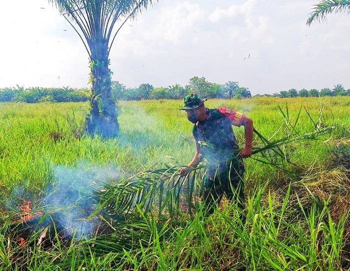 Sedang Patroli, Koptu Yuliarno Temukan Lahan Sawit Warga Terbakar