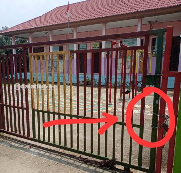 Tampak pagar TK 017 Mutiaraku Silam digembok, sehingga proses belajar mengajar di TK tersebut sudah tidak bisa dilaksanakan.